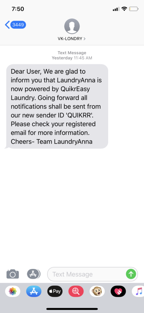Ieri (30 martie), într-un mesaj trimis utilizatorilor săi, LaundryAnna a spus că „LaundryAnna este acum alimentată de Quikr și, în continuare, toate notificările vor fi trimise de la noul nostru ID de expeditor QUIKRR” – indicând o achiziție.
