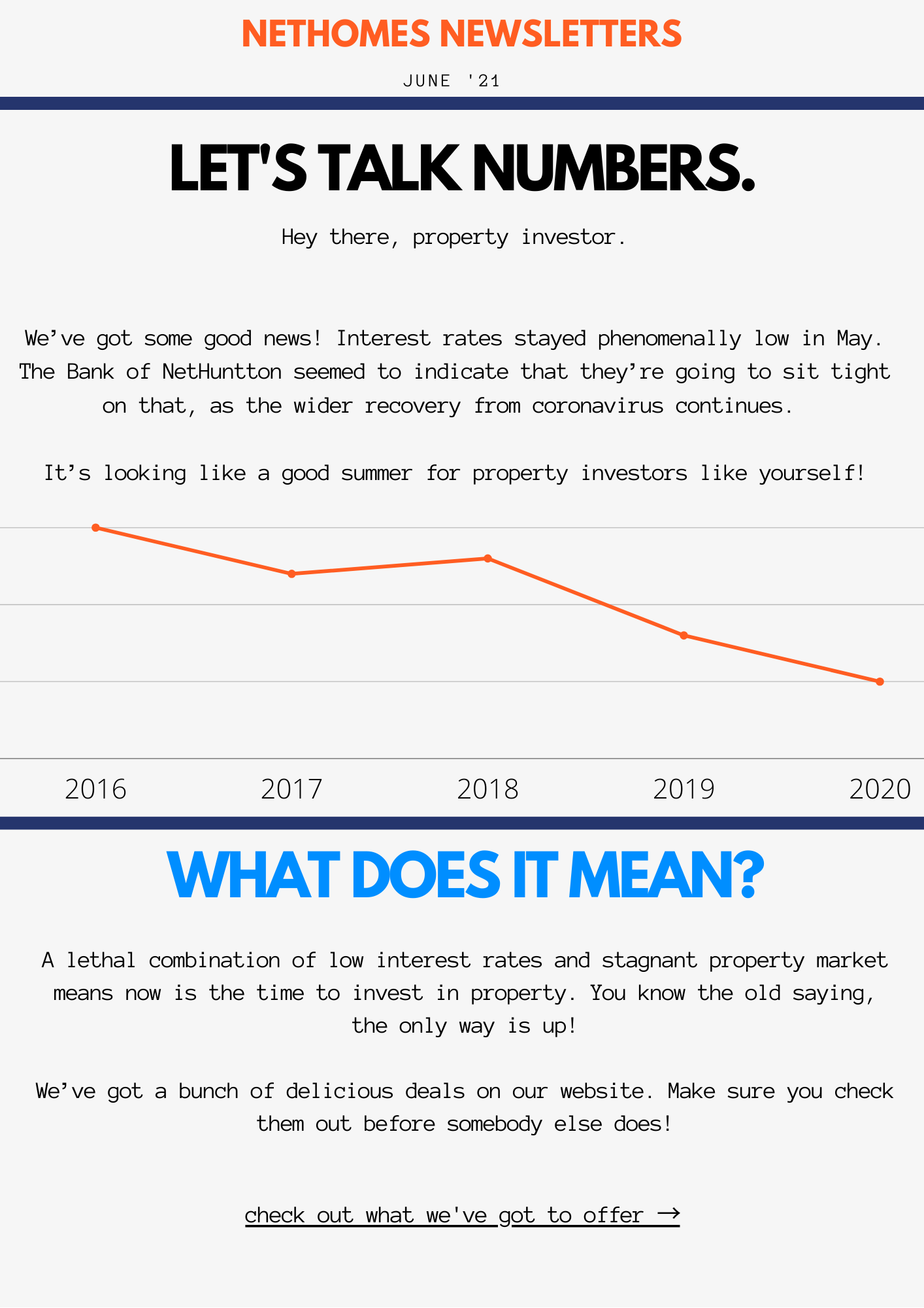 Dar ce poți face dacă nu ai interacționat încă cu clienții potențiali? Ei bine, ați putea să le trimiteți o actualizare generală a listei și să o utilizați pentru a aduna mai multe informații. Așa ceva, de la Nethomes Real Estate Agency - cea mai bună agenție imobiliară din lume!