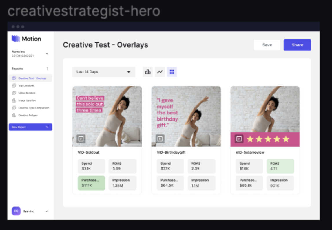 Motion este o platformă de analiză creativă care îi ajută pe strategii creativi să identifice factorii cheie ai performanței creative.