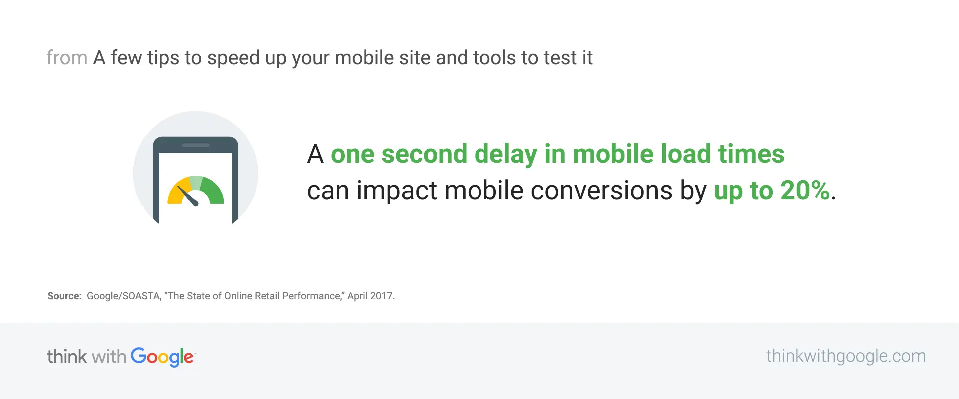 După cum am menționat mai devreme , viteza paginii este un factor de clasare și esențial pentru experiența utilizatorului. Chiar și o întârziere de o secundă în timpul de încărcare a dispozitivelor mobile poate afecta conversiile mobile cu până la 20% .