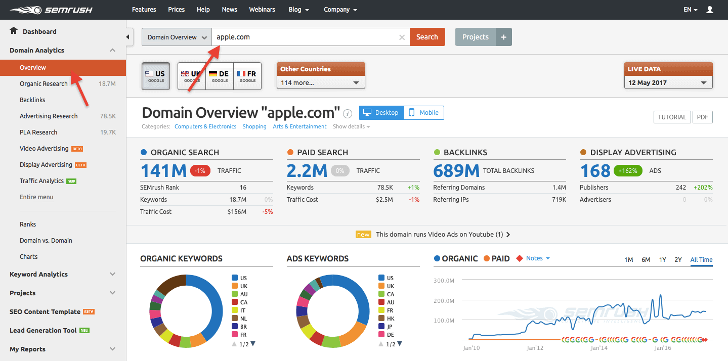 SEMRush — отличный инструмент, который вы можете использовать, чтобы проверить, был ли ваш сайт заблокирован или занесен в черный список поисковыми системами. Этот инструмент также сообщит вам, были ли вы наказаны по какой-либо причине, хотя он не предоставляет информацию о спаме.