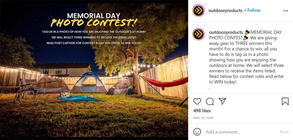 Вот отличный пример фотоконкурса ко Дню памяти, организованного Outdoor Products в 2020 году.