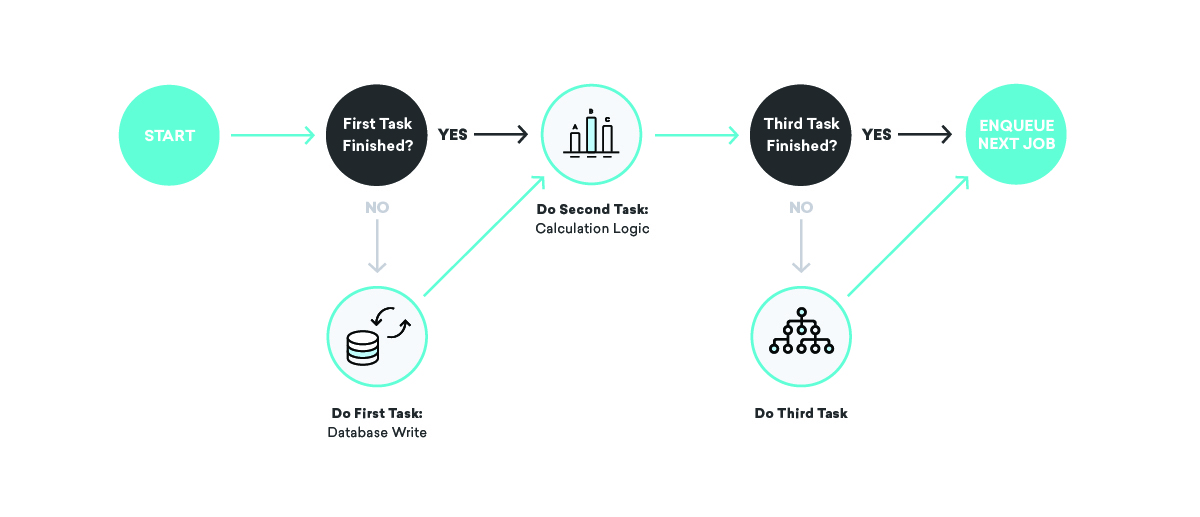 Когда вы говорите об очередях, идемпотентность означает, что одно задание может быть остановлено в произвольной точке, повторно поставленное в очередь задание полностью перезапущено, и конечный результат будет таким же, как если бы мы успешно выполнили задание ровно один раз. время. Это тесно связано с нашим предпочтительным поведением при повторных попытках — доставка по крайней мере один раз. Помня о том, что все наши задания будут выполняться по крайней мере один раз, а может и несколько раз, мы можем написать идемпотентные определения заданий, обеспечивающие согласованность даже при случайных сбоях.