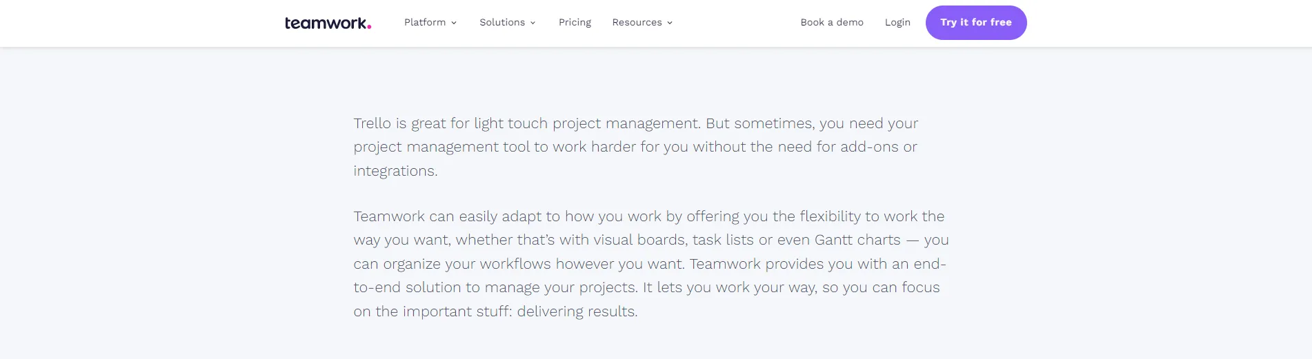 Эффективная страница сравнения поможет принять решение в вашу пользу. Возьмем, к примеру, тематическое исследование Teamwork. Эта SaaS-компания использовала страницы сравнения конкурентов, чтобы получить на 54% больше конверсий органического трафика для своего программного обеспечения для управления проектами.
