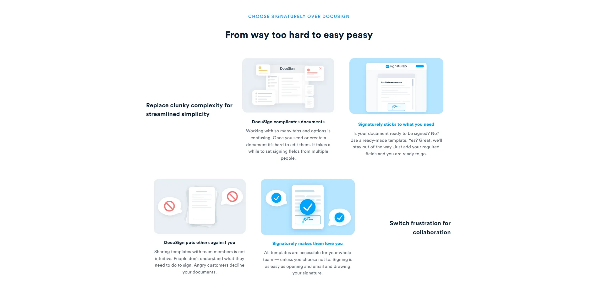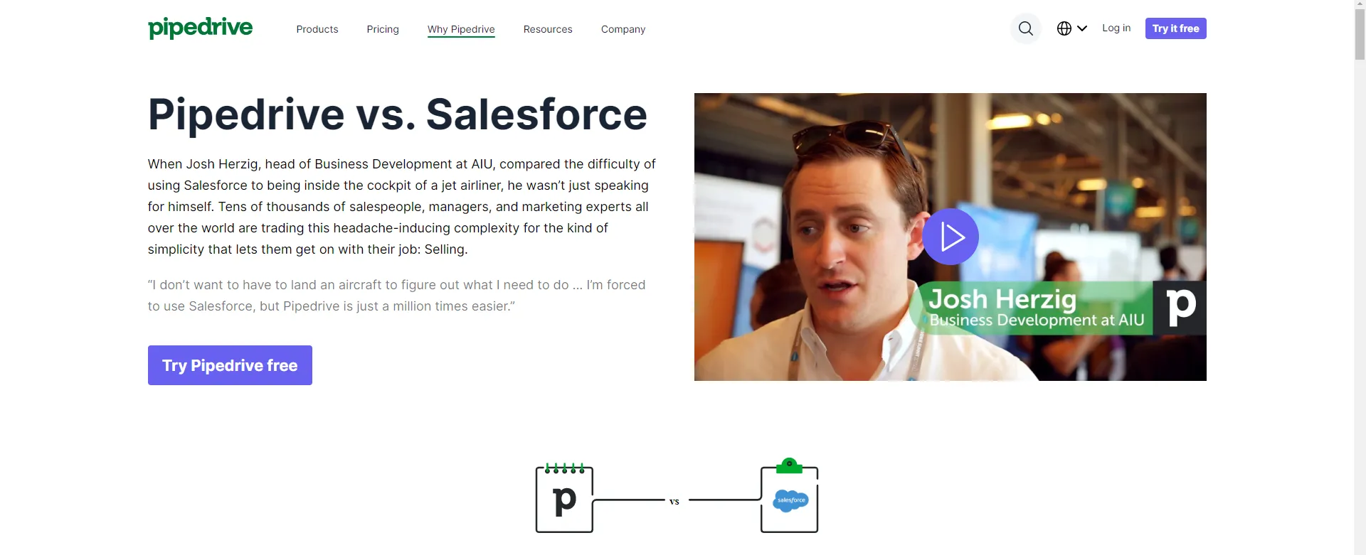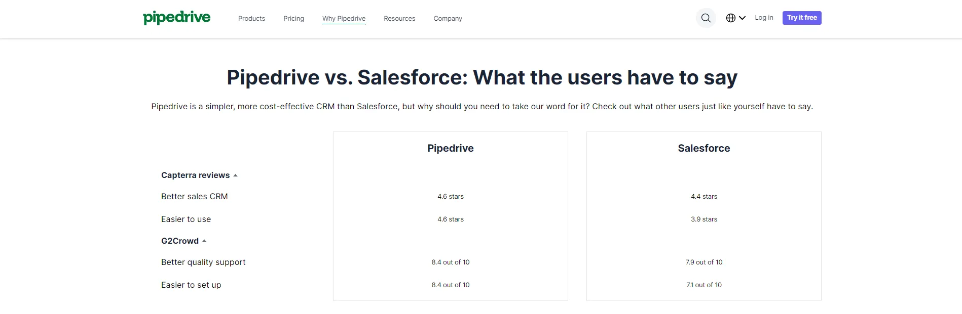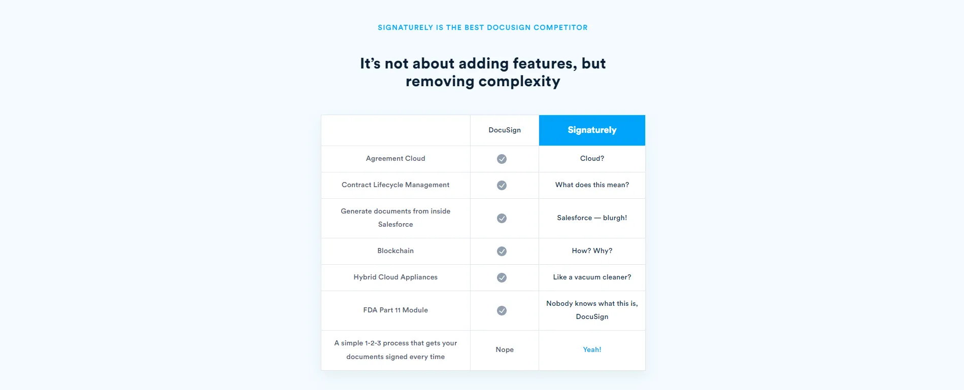 Вся целевая страница сравнения конкурентов выглядит как история, кульминацией которой является конверсия.