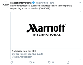 Marriott придерживается фактов в своем недавнем обновлении Twitter о коронавирусе.