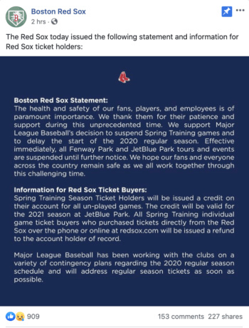 Red Sox сделали это просто, объявив о приостановке сезона, что привлекло большое внимание фанатов, желающих оставаться в курсе событий.