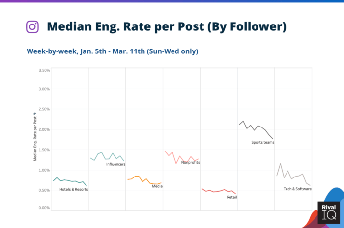 Показатели вовлеченности в Instagram сильно пострадали в первые две недели марта, но некоторые отрасли пришли в норму.