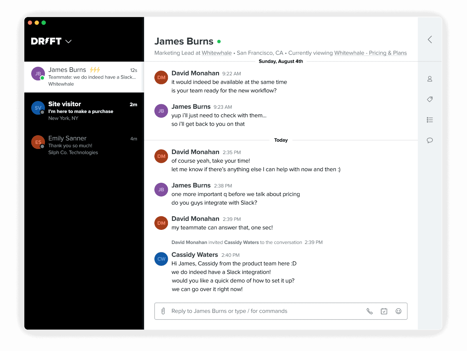 Здесь вам не нужно посещать традиционные маркетинговые форумы, вместо этого ваш потенциальный клиент подключается через чат-бот Drift к вашему торговому представителю.