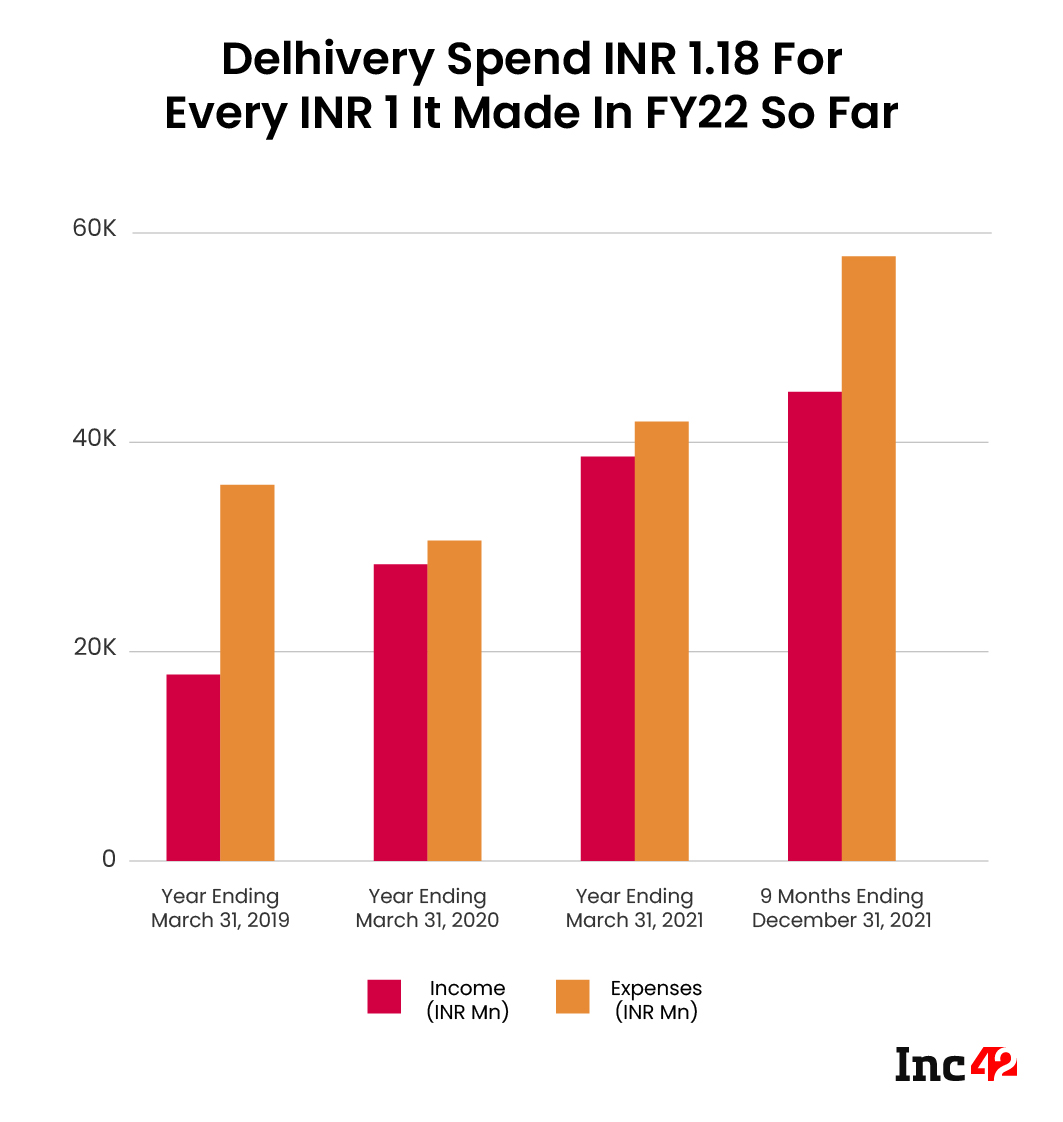 Общий доход логистического единорога до 31 декабря 2021 года составил 4 911,4 крора, а расходы — 5 810,15 крора.