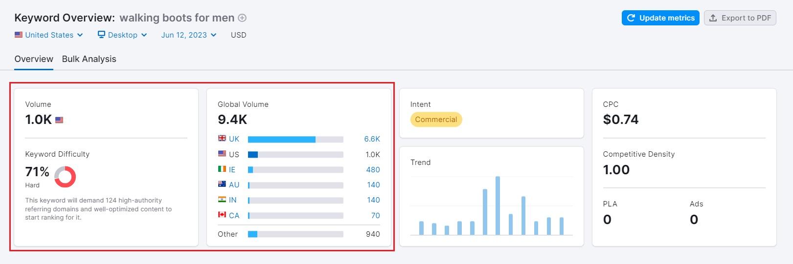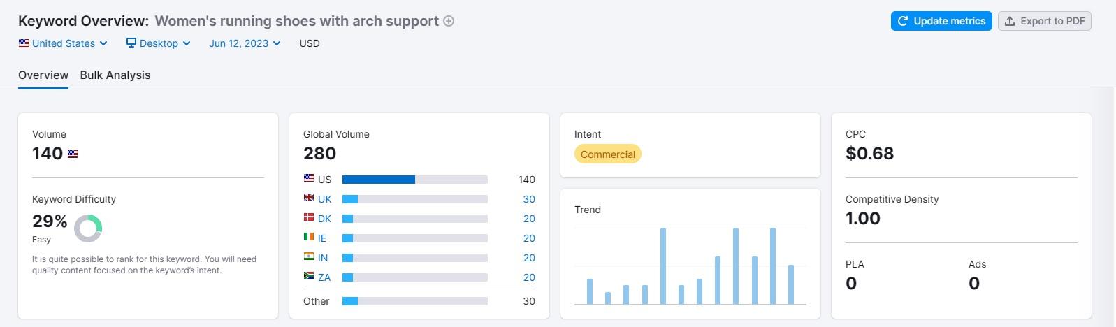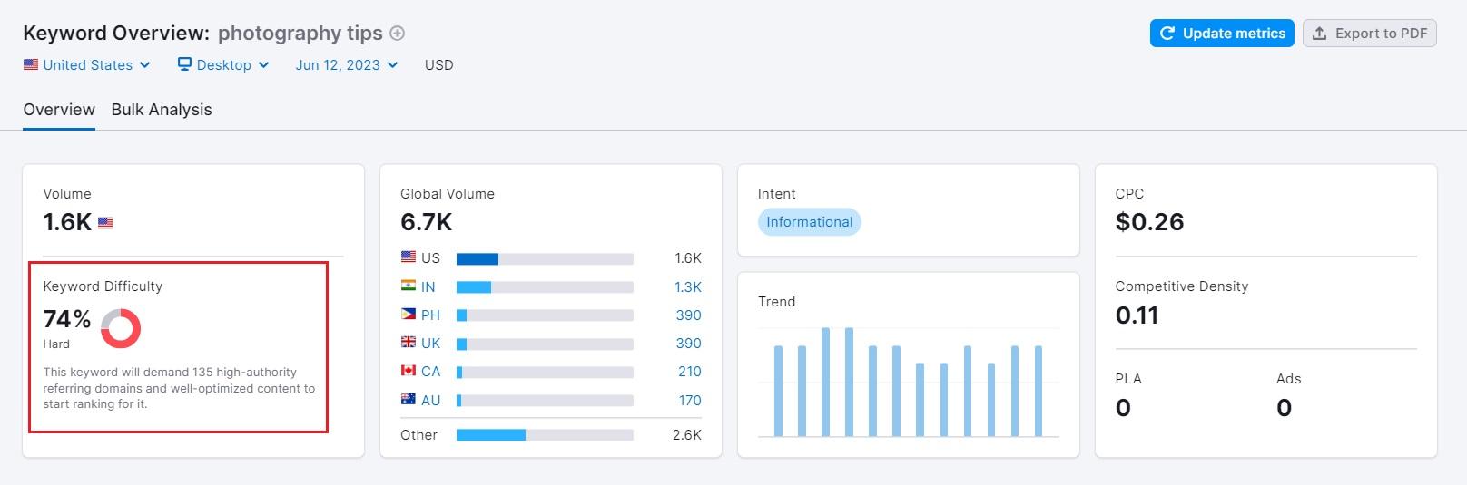 SEO-инструменты часто используют показатель сложности ключевого слова, чтобы показать уровень конкуренции за поисковый запрос: