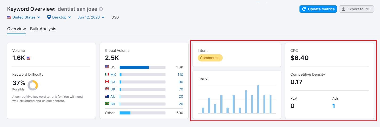 Помимо анализа намерения ключевого слова, следует обратить внимание на две вещи: данные о тенденциях и CPC (цена за клик).