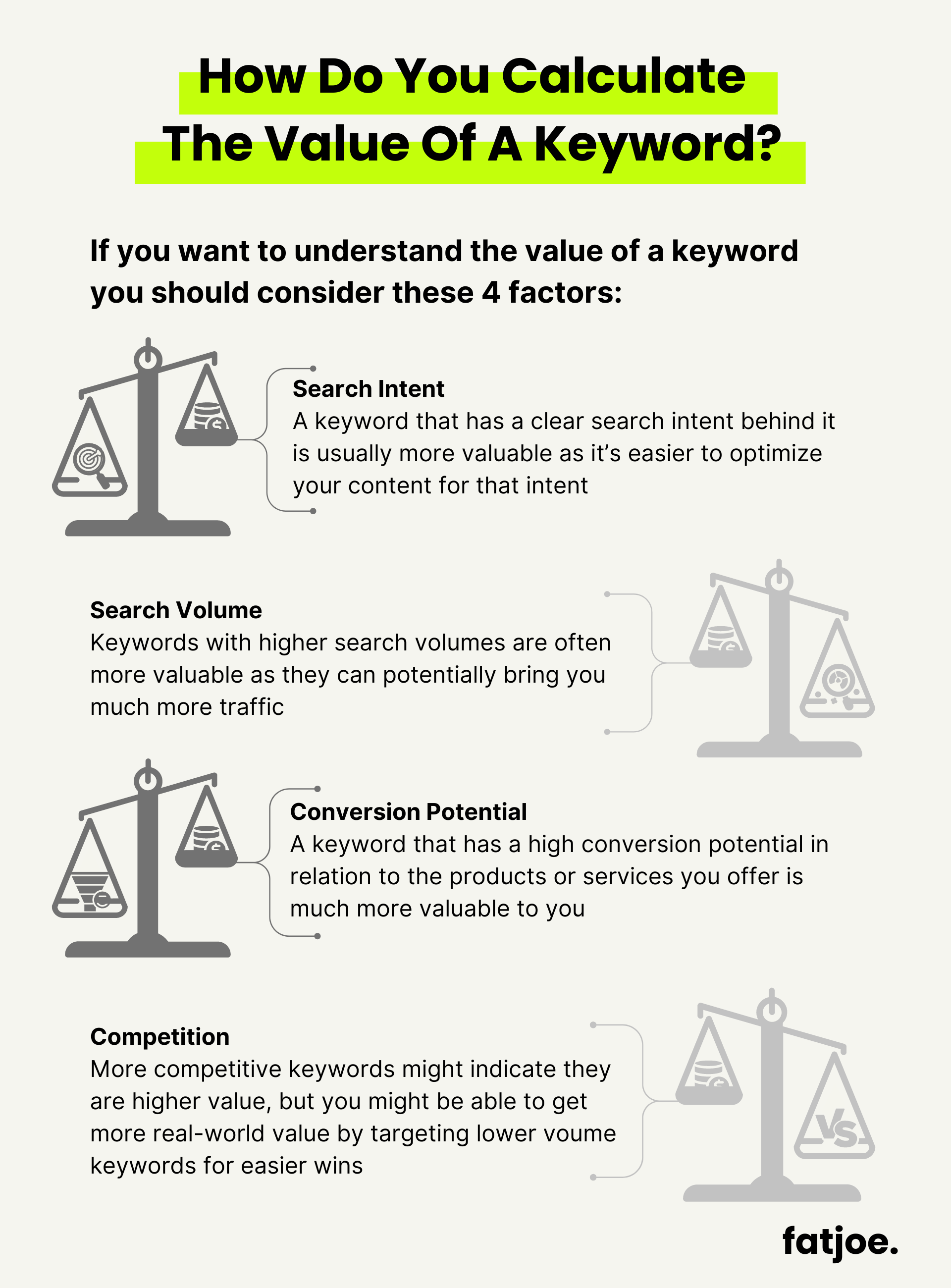 Есть четыре основных фактора, которые определяют ценность ключевого слова.