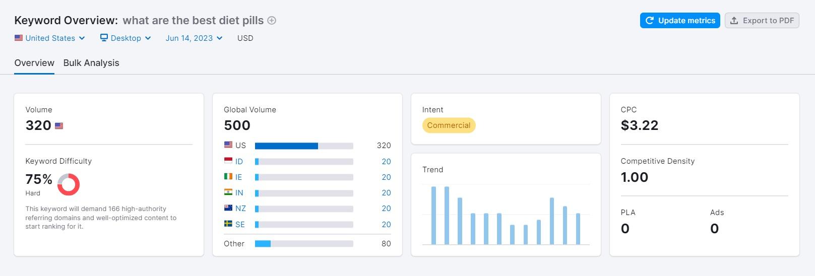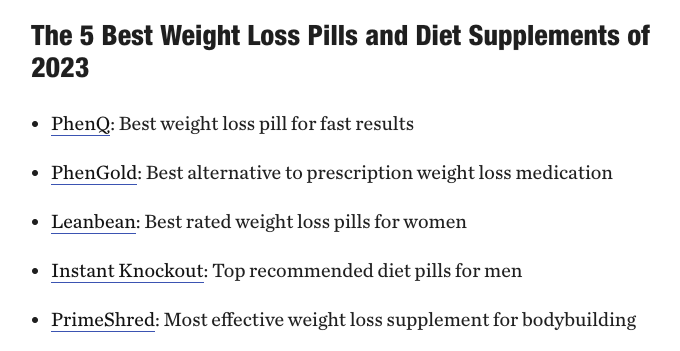 Высокий рейтинг по поисковым запросам, таким как «лучшие таблетки для похудения» и «какие таблетки для похудения самые лучшие», будет полезен для вашего клиента.