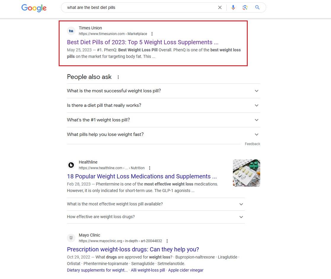 Но, используя подход Parasite SEO, они использовали авторитет домена Times Union, чтобы попасть на вершину поисковой выдачи.