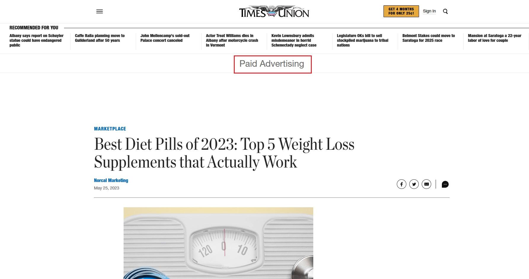 Если мы посмотрим на страницу Times Union, то увидим, что это спонсируемый пост.
