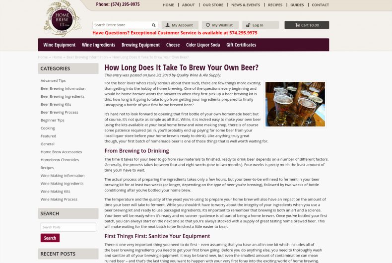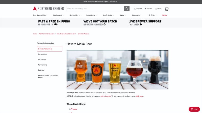 Первый стандартный результат Google, который мы видим на странице, — это руководство по пивоварению от Northern Brewer, состоящее из нескольких частей.