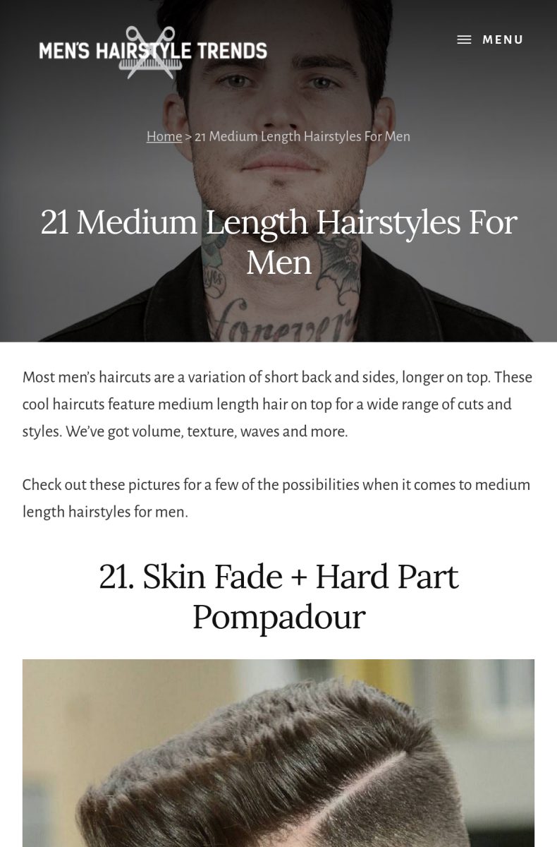 Он знакомит читателя с миром причесок средней длины, сообщает им об идеальной толщине волос для этих стилей, цитирует эксперта по прическам из Великобритании и дает читателю несколько советов по поиску стиля, который им подходит.