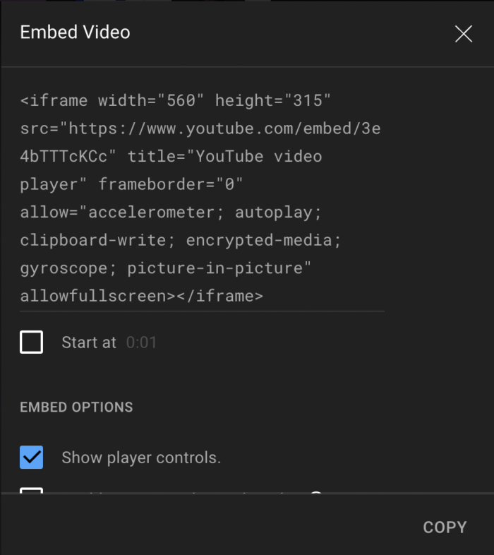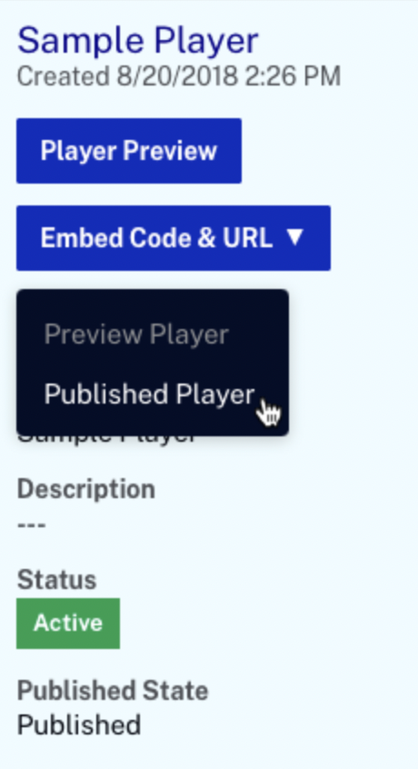 - В модальном окне веб-плеера скопируйте код встраивания «Published Player».