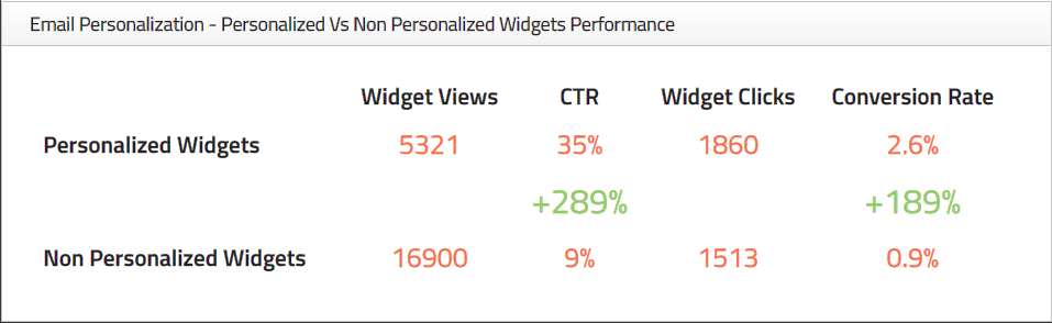 ในการศึกษา การปรับคำแนะนำเหล่านี้เป็นแบบส่วนตัวในระดับ 1:1 ช่วยเพิ่มจำนวนคลิกได้ 289% และการซื้อเพิ่มขึ้น 189%!