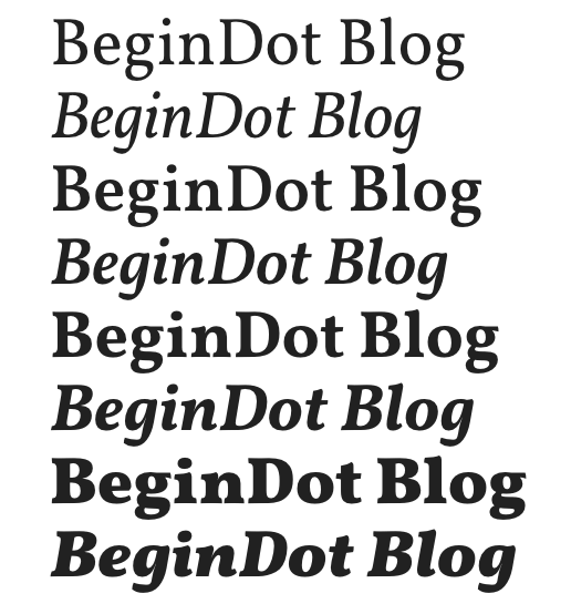 มันแบ่งออกเป็นหกประเภทขึ้นอยู่กับตัวเอียงหรือตัวหนาที่คุณต้องการ ได้รับการพิสูจน์แล้วว่ามีประสิทธิภาพสำหรับข้อความเนื้อหา