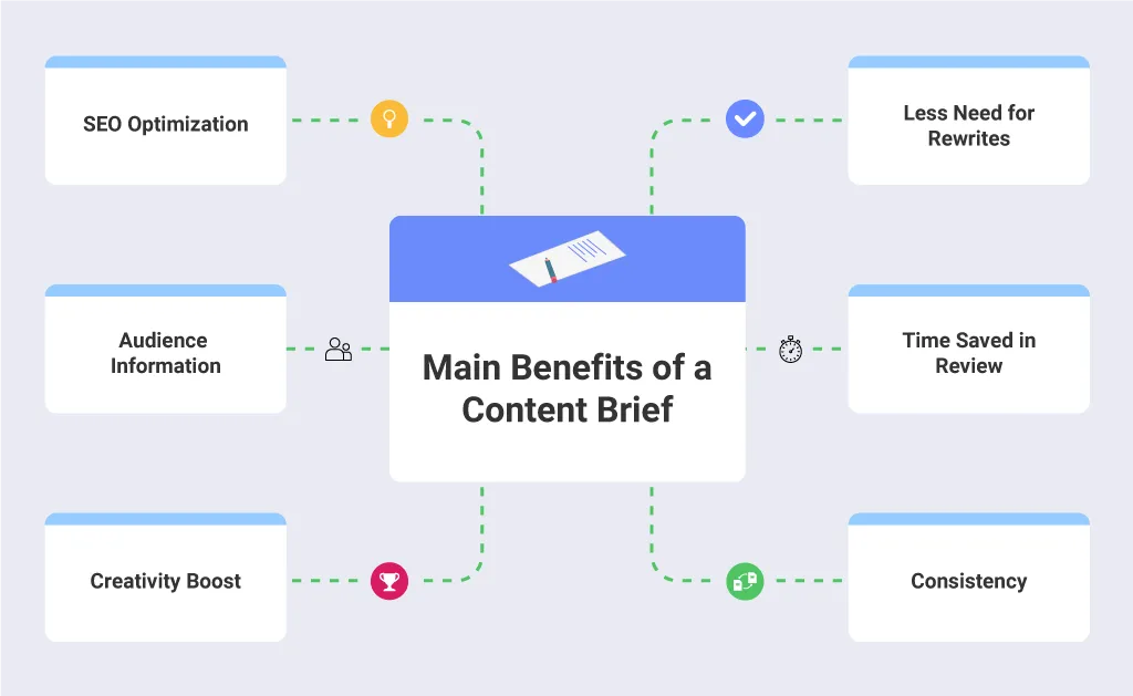Dustin Ray ที่ Incfile กล่าวว่า "การสร้างบทสรุปเนื้อหาช่วยให้พนักงานสร้างสรรค์มีระเบียบและมีประสิทธิผล ในบางบริษัท ครีเอทีฟโฆษณาจะได้รับเพียงชื่อหรือหัวข้อโดยไม่มีคำแนะนำเพิ่มเติมเกี่ยวกับวิธีการทำงานของชิ้นงาน สิ่งนี้ทำให้มีช่องว่างสำหรับการสื่อสารที่ผิดพลาดและข้อผิดพลาด”