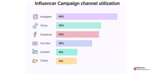 แม้จะมีความตื่นเต้น แต่ก็ยังมีปัจจัยสุดท้ายสองสามข้อที่ต้องพิจารณาก่อนที่จะเริ่มดำเนินการ - ปัจจัยที่อ้างถึง "ที่ไหน" ในการทำเช่นนี้ ให้ลองกลั่นกรองเนื้อหาของรายงานการเปรียบเทียบปี 2021 เป็นครั้งสุดท้าย และตรวจสอบข้อมูลเชิงลึกที่บอกเราเพิ่มเติมเกี่ยวกับช่องทางโซเชียลที่เลือกสำหรับแคมเปญดังกล่าว ตามที่คาดไว้ ข้อมูลจะทำให้อินฟลูเอนเซอร์เป็นที่ชื่นชอบตลอดกาล – Instagram อยู่ในตำแหน่งโพล โดย 68% ของผู้เข้าร่วมใช้อินฟลูเอนเซอร์สำหรับแคมเปญอินฟลูเอนเซอร์