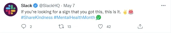 ตัวอย่างเช่น หากต้องการเป็นหนึ่งในเครื่องมือสื่อสารในทีมที่ใหญ่ที่สุด Slack อาศัยการสร้างแบรนด์เพื่อสร้างมุมมองแบบออร์แกนิกไปยังเว็บไซต์ของตน นักออกแบบ Slack ทราบดีว่าเครื่องมือนี้จะใช้งานไม่ได้หากไม่ได้ใช้งานจนติดหนึบ พวกเขามุ่งเน้นไปที่การเชื่อมต่อกับลูกค้าและเลือกใช้เสียงของแบรนด์ที่มีชีวิตชีวา ตลกและชัดเจน ซึ่งสะท้อนให้เห็นในสำเนาและโซเชียลมีเดีย ลองดูทวีตนี้ที่เน้นโทนความเห็นอกเห็นใจที่พวกเขามองหาในรูปแบบสำเนา