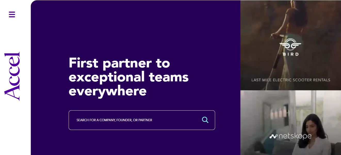 Accel Partners เป็นบริษัทร่วมทุนของอเมริกาที่มีสำนักงานในแคลิฟอร์เนียและซานฟรานซิสโก ในฐานะที่เป็นหนึ่งในบริษัท VC ที่มีชื่อเสียงที่สุดในโลก Accel Partners มีประสบการณ์มากกว่า 35 ปีในการสร้าง จัดหาเงินทุน และสนับสนุนการเริ่มต้น SaaS ด้วยการลงทุนเริ่มต้น เริ่มต้น และระยะการเติบโต VC นี้ให้ทุนแก่บริษัทกว่า 500 แห่งด้วยเงินทุนจำนวน 19.56 พันล้านดอลลาร์