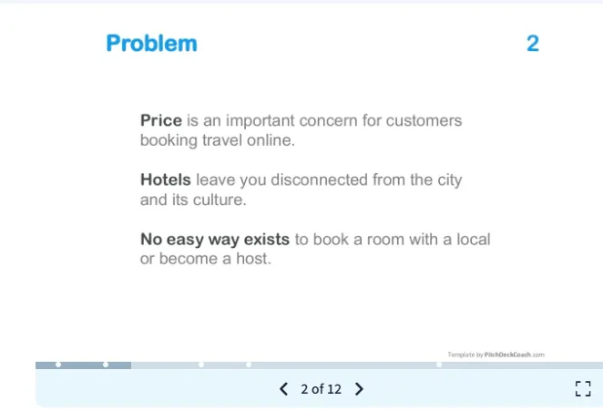 ดูตัวอย่างสำรับ pitch ของ Airbnb
