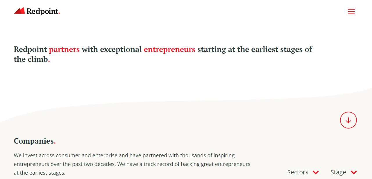 Redpoint Ventures ซึ่งมีสำนักงานใหญ่ในแคลิฟอร์เนียก่อตั้งขึ้นเพื่อช่วยบริษัทต่างๆ ในการระดมทุนในระยะเริ่มต้น ระยะเริ่มต้น และระยะการเติบโต บริษัท VC นี้มีจุดมุ่งหมายเพื่อกำหนดตลาดที่มีอยู่ใหม่และสร้างการเริ่มต้นที่ยอดเยี่ยมใน SaaS ผู้บริโภค การดูแลสุขภาพ ฟินเทค และภาคโครงสร้างพื้นฐาน