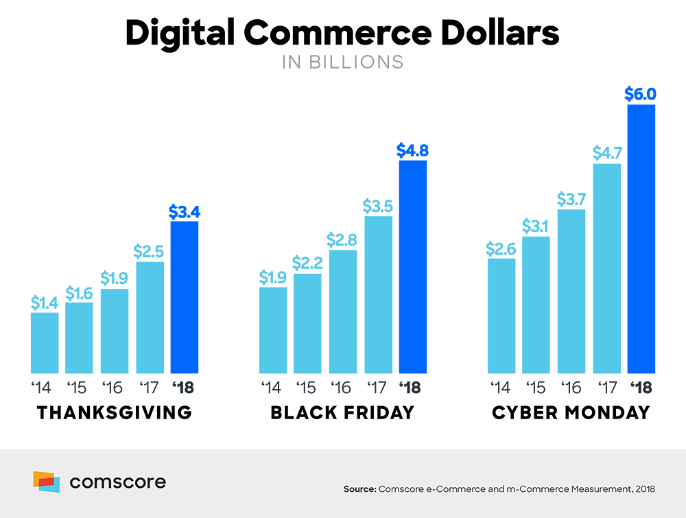 İstatistiksel olarak Kasım ve Aralık 2018 döneminde gerçekleşen tatil perakende satışları bir önceki yıla göre %2,9 artarak 1 Trilyon Doların üzerine çıktı! Ve o dönemdeki tüm alışveriş etkinlikleri içinde en çok satış getiren Siber Pazartesi oldu. Yalnızca ABD'de 67,4 Milyondan fazla alışveriş yapan kişi, 6 Milyar Dolar'a ulaştı.