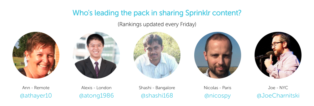 Düzenli olarak katkıda bulunan her ekibin içeriği yüklemekten sorumlu bir kişisi vardır ve bir nihai onaylayıcımız vardır. Anahtar, çalışanların içerik önermek için yerde göz olarak hizmet etmelerini sağlamaktır. Bu amaçla, Sprinklr'da Engage'deki tüm aktif çalışanlar, meslektaşlarının yaygınlaştırması için sektör haberlerini önerebilir.