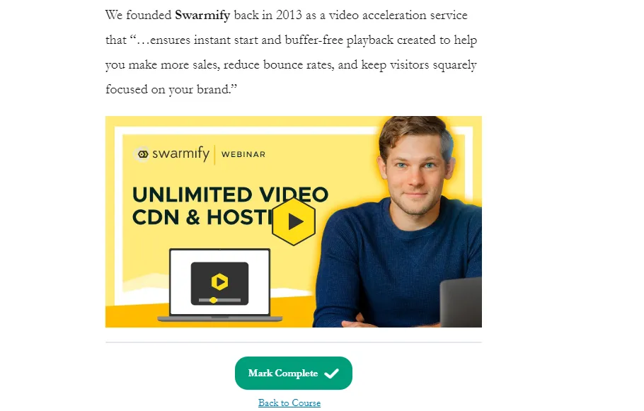 Bunun da ötesinde, videolarınız birden fazla cihazda iyi görünecek ve performans gösterecektir. YouTube gibi bir üçüncü taraf video paylaşım sitesi kullanıyorsanız, artık inatçı markalaşmaya, önerilen videolara ve video kurslarınızdaki bağlantılara veda edebilirsiniz.