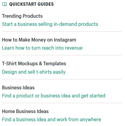 Blogundaki her makale, Shopify'ın hedef kitlesi hakkında sahip olduğu bilgilerin kalitesini gösterir. Sonuç olarak, e-ticaret içerik pazarına başarıyla hükmediyorlar. Buna bir örnek, blogundaki "hızlı başlangıç kılavuzları" bölümüdür.
