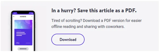 Bu blog makaleleri oldukça uzun olduğundan, Kinsta okuyucularına bunları PDF olarak kaydetmelerini sağlar. Potansiyel müşterileri yakalamanın kanıtlanmış bir yolu!