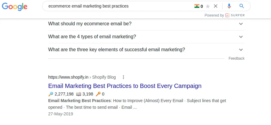 Son derece rekabetçi anahtar kelimeler için bile Shopify, ilk sayfaya giden yolu bulmuş görünüyor.