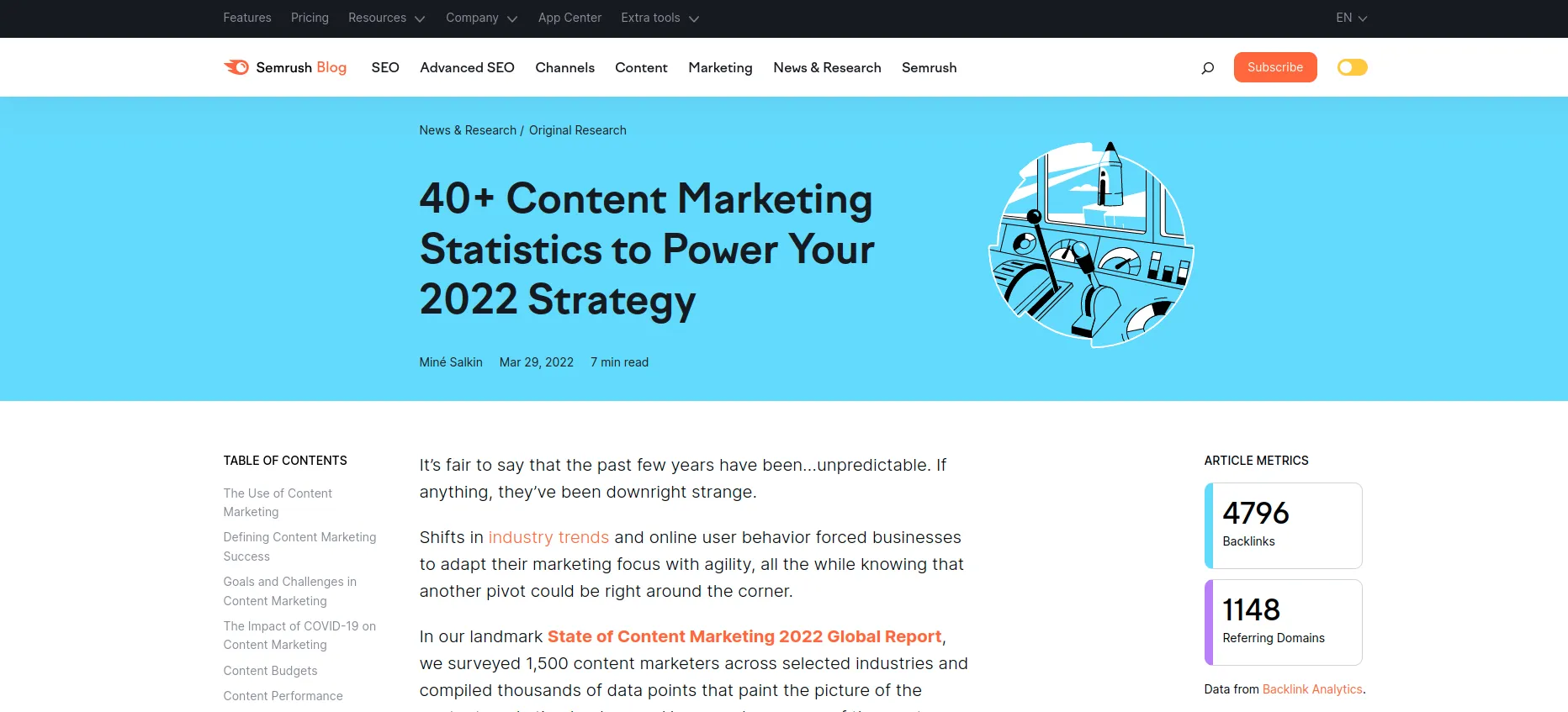 12. Semrush'ın Merkeze Hizalanmış Blogu ve Akıllı CTA