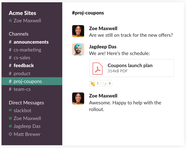 Evden çalışan çalışanlarınızın hızla işbirliği yapmasına ve bilgi alışverişinde bulunmasına yardımcı olacak bir anlık mesajlaşma platformu.