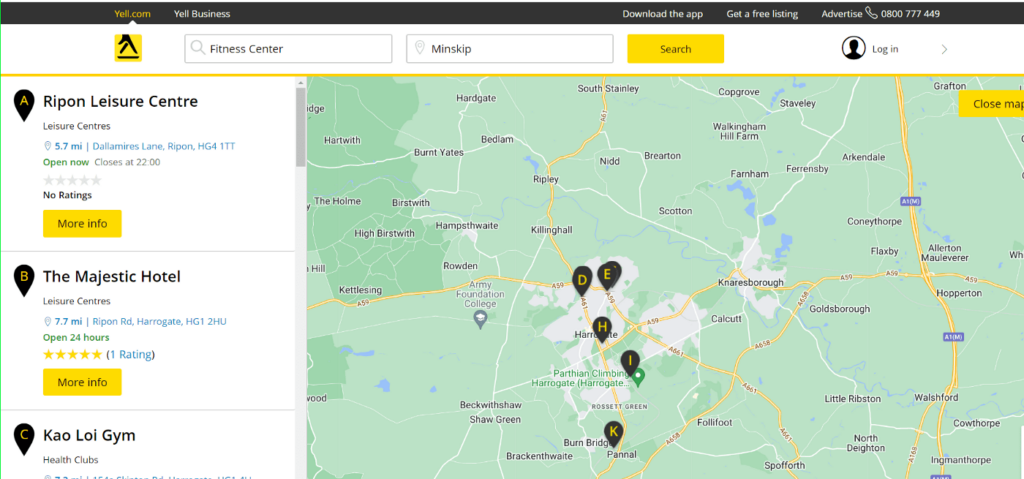 Ayrıca sarı sayfalara gidebilir ve bir harita kullanarak fitness merkezlerinin yoğunluğuna bakabilirsiniz. Örneğin, fitness merkezlerinin çoğunluğunun tek bir yerde toplandığını görüyorsunuz, bu nedenle uzak bölgelerden insanların karşılanmamış ihtiyaçları olabilir. Bu içgörüyü tanıtım için bırakalım.