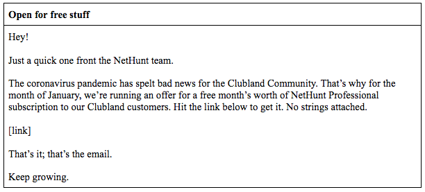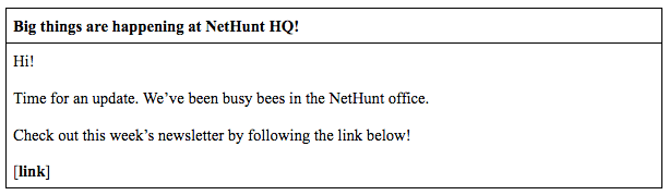 Bir toplu e-posta kampanyasının herhangi bir sayıda amacı olabilir. E-posta Pazarlama Hakkında Bilmeniz Gereken Kesinlikle Her Şeyi içeren makalemizi okumadıysanız, gidin okuyun. Eğer silahlanamıyorsanız, gerçek NetHunt tarzında sizin için parçalayacağız.