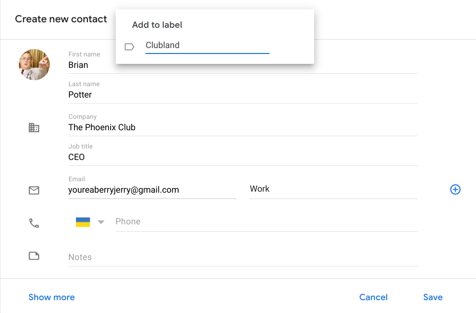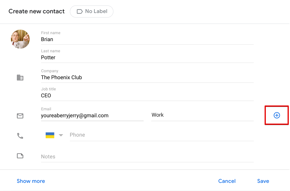 - Bir kişi oluştururken veya düzenlerken "Daha fazla göster" düğmesine basarak, özel bir alan da dahil olmak üzere 54'e kadar farklı bilgi alanını doldurabilirsiniz.