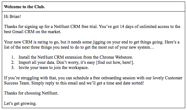 Karşılama e-postanızın tek amacı, bir kullanıcıyı bir sonraki adımı atmaya teşvik etmektir. Böyle bir şey yapmalı.