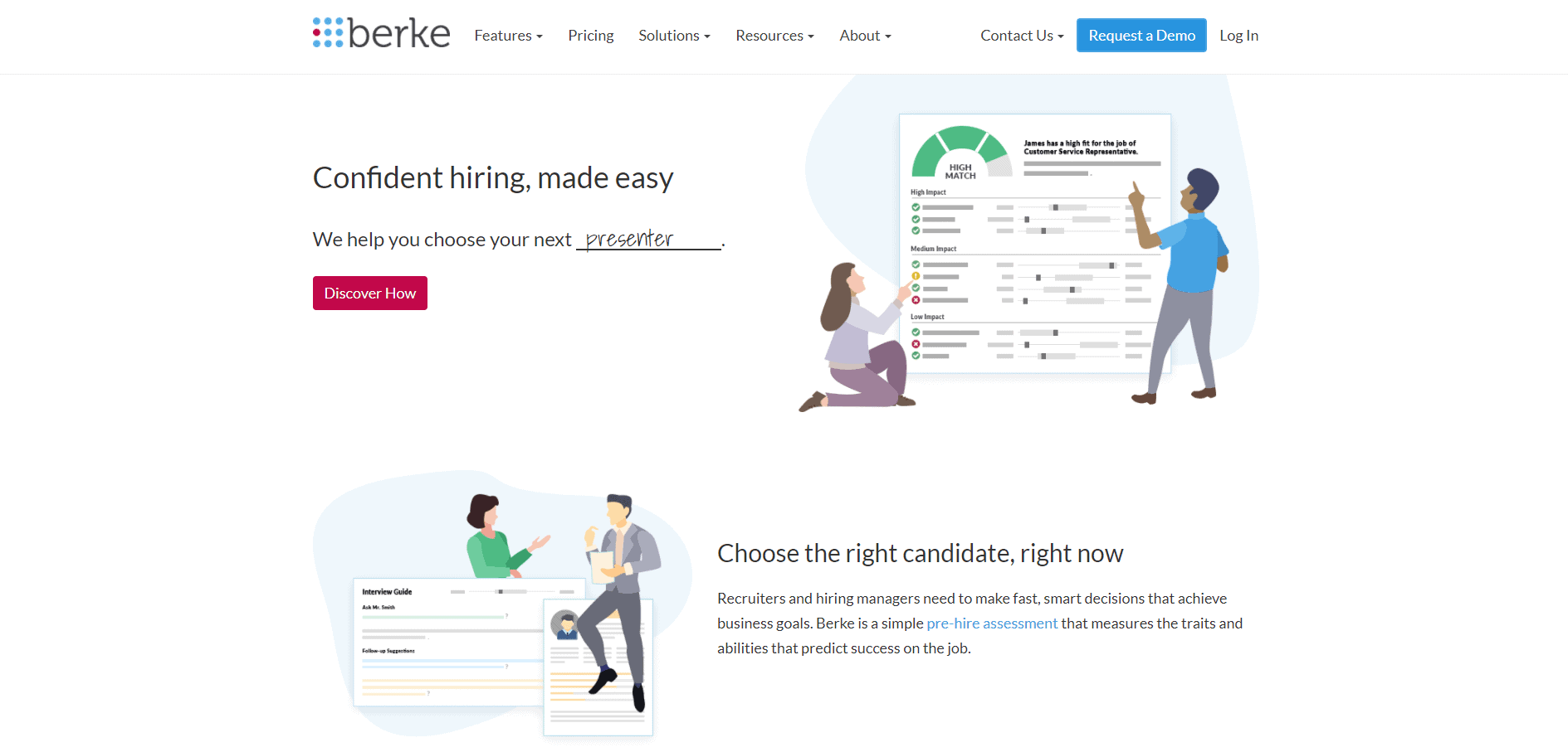 Berke, çalışan ve aday arasındaki uyumluluk düzeyini belirlemek için çeşitli ölçütlerde çalışır, yalnızca beceri düzeyi ve profesyonel yetenekleri değil.