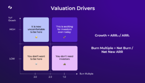 Büyüme grafiğinin sol üst köşesi, tipik SLG modeliniz olan yüksek büyümeyi ancak pahalı büyümeyi temsil eder. Sol alt köşe, sürdürülemez olan düşük getiri ile yüksek harcamayı temsil ediyor. Sağ alt köşe, verimli bir şekilde gelir yaratan ancak büyümeyen bir yaşam tarzı işini temsil ediyor. Sağ üst köşe ideal konumdur ve yatırımcıların olmamızı istediği yerdir - nispeten düşük bir maliyetle sağlanan yüksek ARR büyümesi.