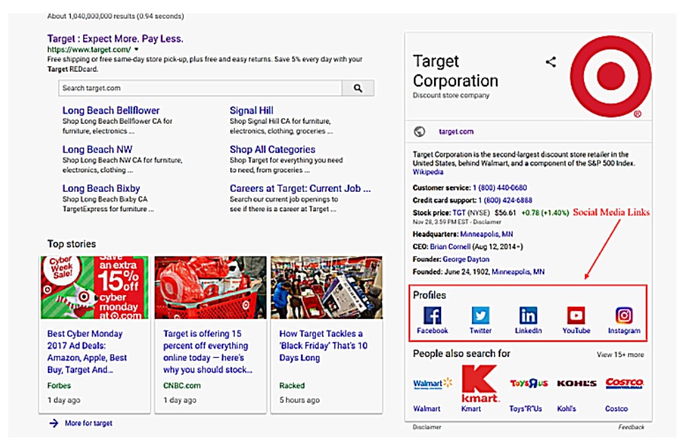 Bağlantılara öncelik vermek, sosyal medya pazarlamasına yeni başlayanlar için çok şey yapabilir. Tutarlı ve sağlam bir sosyal medya sistemi kurarsanız, bağlantıları odak noktalarınızdan biri haline getirmelisiniz. Google+ hesabınızın diğer tüm sosyal medya sayfalarınıza bağlantı verdiğinden emin olun. Sosyal medya bağlantılarınızı pano genelinde açık hale getirdiğinizden emin olun. İnsanlar markanızın Facebook sayfasını ziyaret ederse, Instagram ve Twitter hesaplarınızın bağlantılarını hızla bulabilmelidir. Sosyal medya karmaşasına yer bırakmayın. Sosyal medya stratejinizin aksamadan ilerlemesini istiyorsanız, kapsamlı olmalısınız. Örneğin, Google Hedeflediğinizde, doğrudan SERP'den sosyal medya profillerinden herhangi birine kolayca bağlanabilirsiniz.