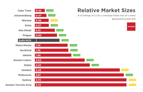 Şirketin cirosuna %20 katkıda bulunan yemek siparişi işi şu anda 13 Hindistan ve üç Orta Doğu şehrinde faaliyet gösteriyor . İlginç bir şekilde, bu Zomato'yu küresel bir varlığa sahip birkaç Hintli tek boynuzlu attan biri yapıyor. Geçen yıl dokuz ülkeden operasyonlarını geri almış olsa da, yakında Beyrut'ta başlayacak. Hindistan dışında Melbourne, Dubai, Lizbon, Auckland Zomato için güçlü pazarlardır.