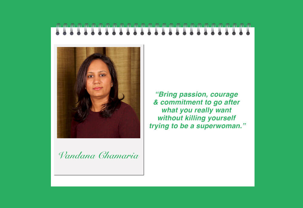 Vandana says, “See the world everyday with a fresh pair of eyes, a curious mind and a confident will to succeed. Bring passion, courage & commitment to go after what you really want without killing yourself trying to be a superwoman.”