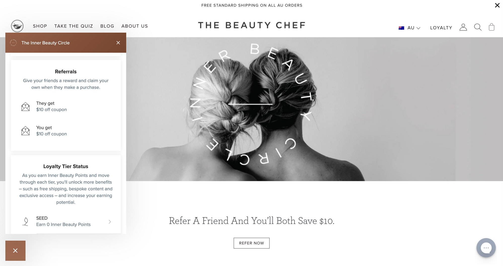 同样值得注意的是,The Beauty Chef 的解释器页面上写满了语言和语调。 通过将他们的忠诚度计划称为“内在美圈”,他们发挥了专属内圈和内在美的概念。 这让他们的客户从内到外都感到奢华。 他们的等级名称也通过使用“种子”、“收获”和“发光”等术语与他们的健康和保健品牌价值保持一致。 在所有平台上以一致的语气进行沟通可以为您的客户建立强大、值得信赖的品牌个性。