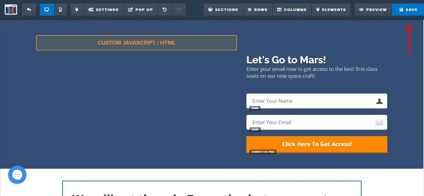 为了说明如何在 ClickFunnel 中使用 SmartVideo 标签,我创建了另一个示例页面,我在其中销售火星之旅 :)